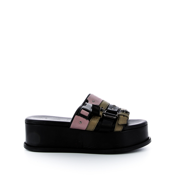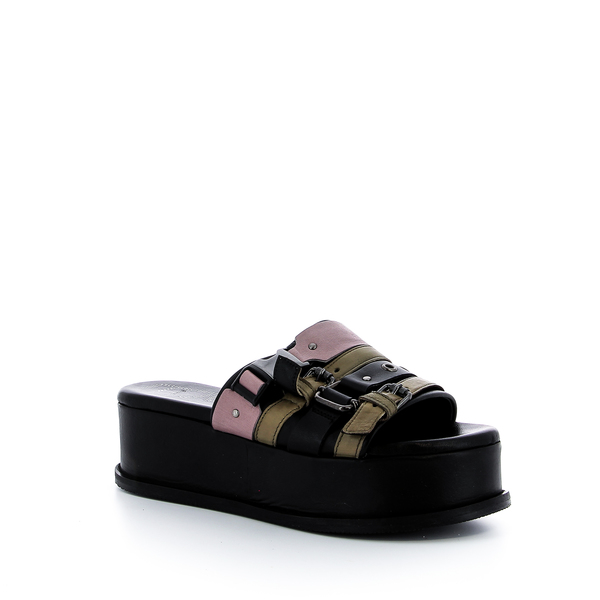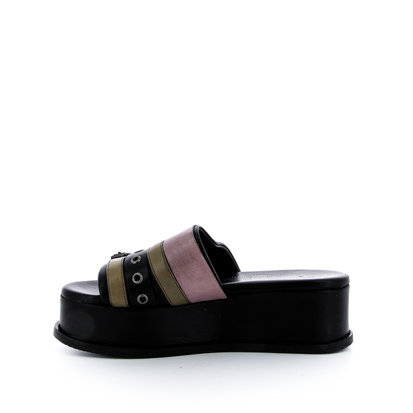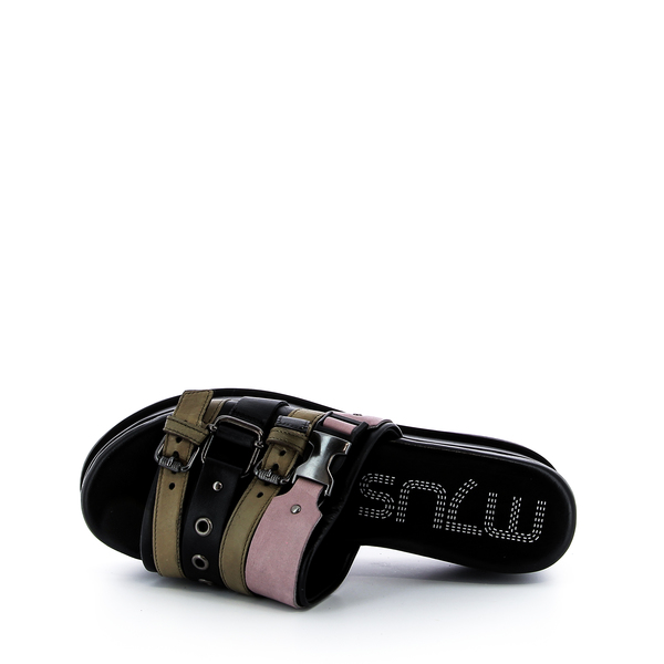 Chaussures R.V. vous conseille de prendre votre pointure habituelle. Mule Mjus, collection printemps-été 2021. Mjus est une marque Italienne, avec son style fashion reconnaissable entre tous. Une recherche permanente de mélange de différents cuirs, de coloris, afin d'obtenir une chaussure originale, jeune et branchée. On adore ce look Italien que l'on adopte volontiers et surtout ce confort! |